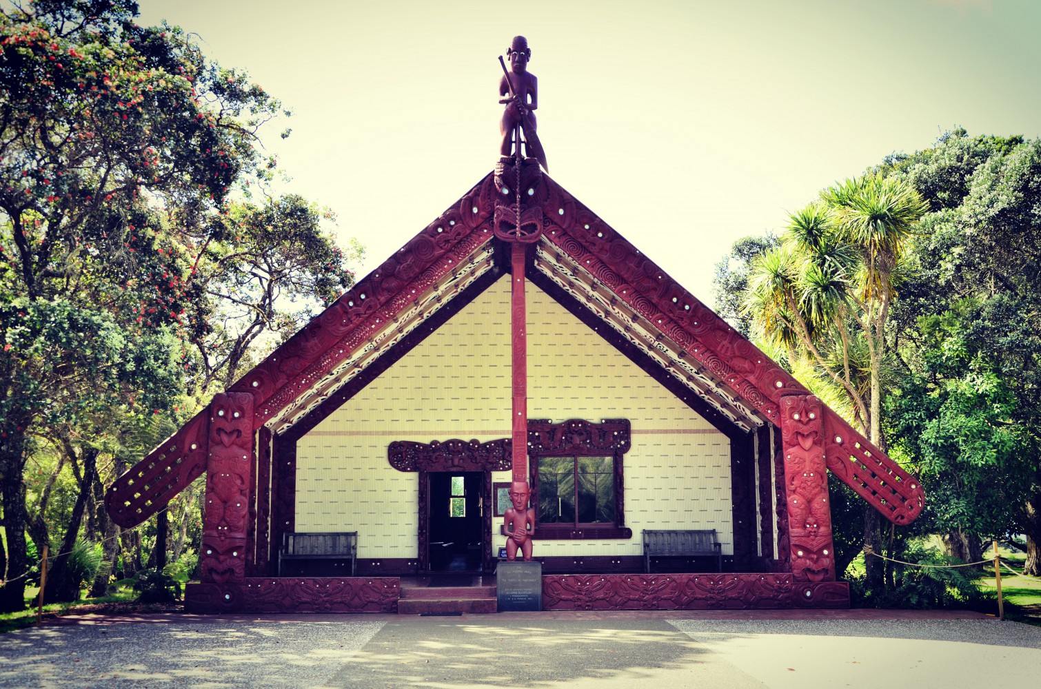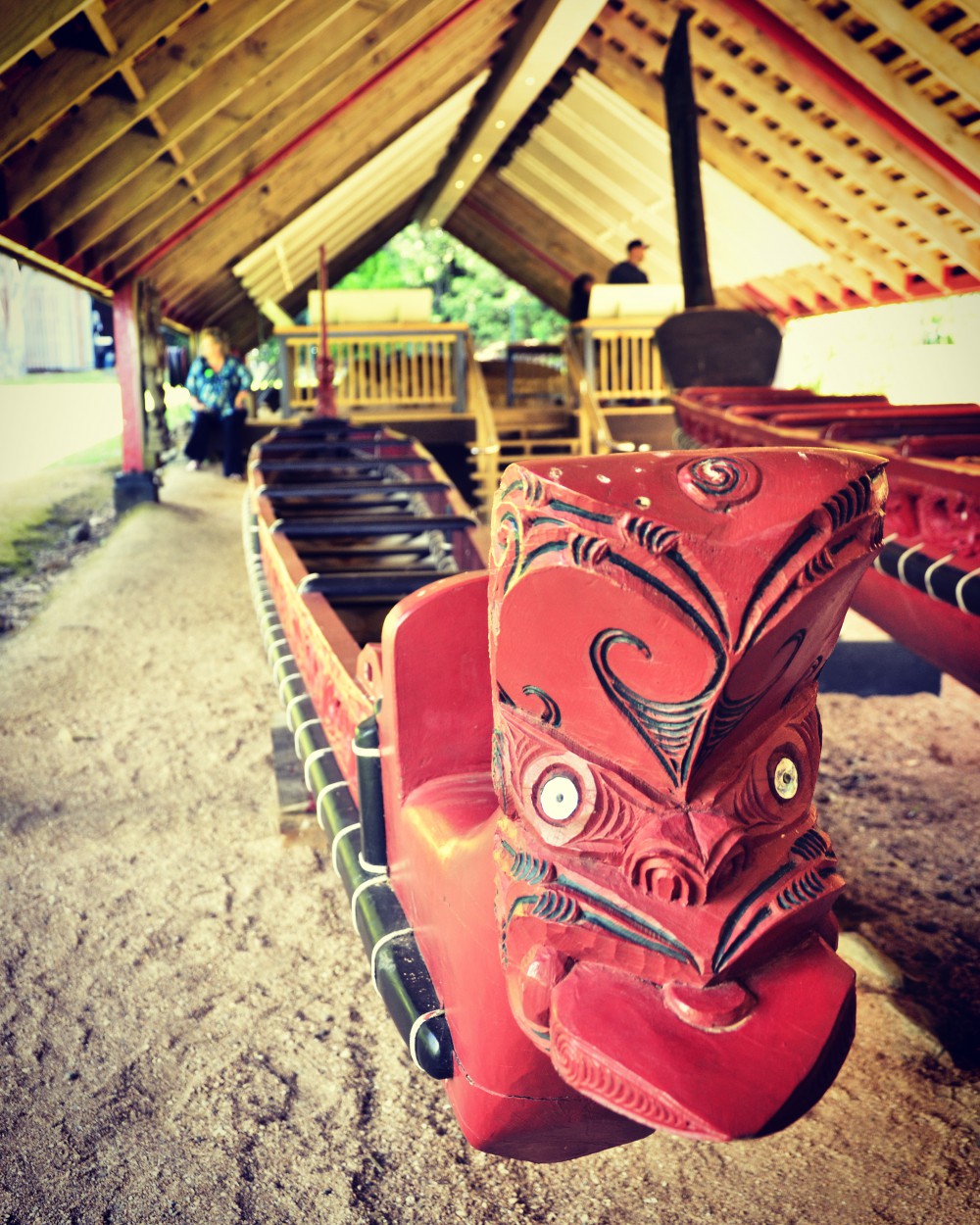 Visite obligatoire du Treaty Ground de Waitangi, lieu fondateur de la nation car là où fut signé le traité de colonisation du pays par les britanniques en 1840. Un peu paradoxalement, comme pour l’Australie, la création de la Nouvelle-Zélande rime donc avec invasion anglaise et non indépendance. L’occasion d’une introduction à l’histoire du pays mais surtout à la culture Maori, jusque là seulement entrevue dans quelques livres ou sur les mollets tatoués des passants.