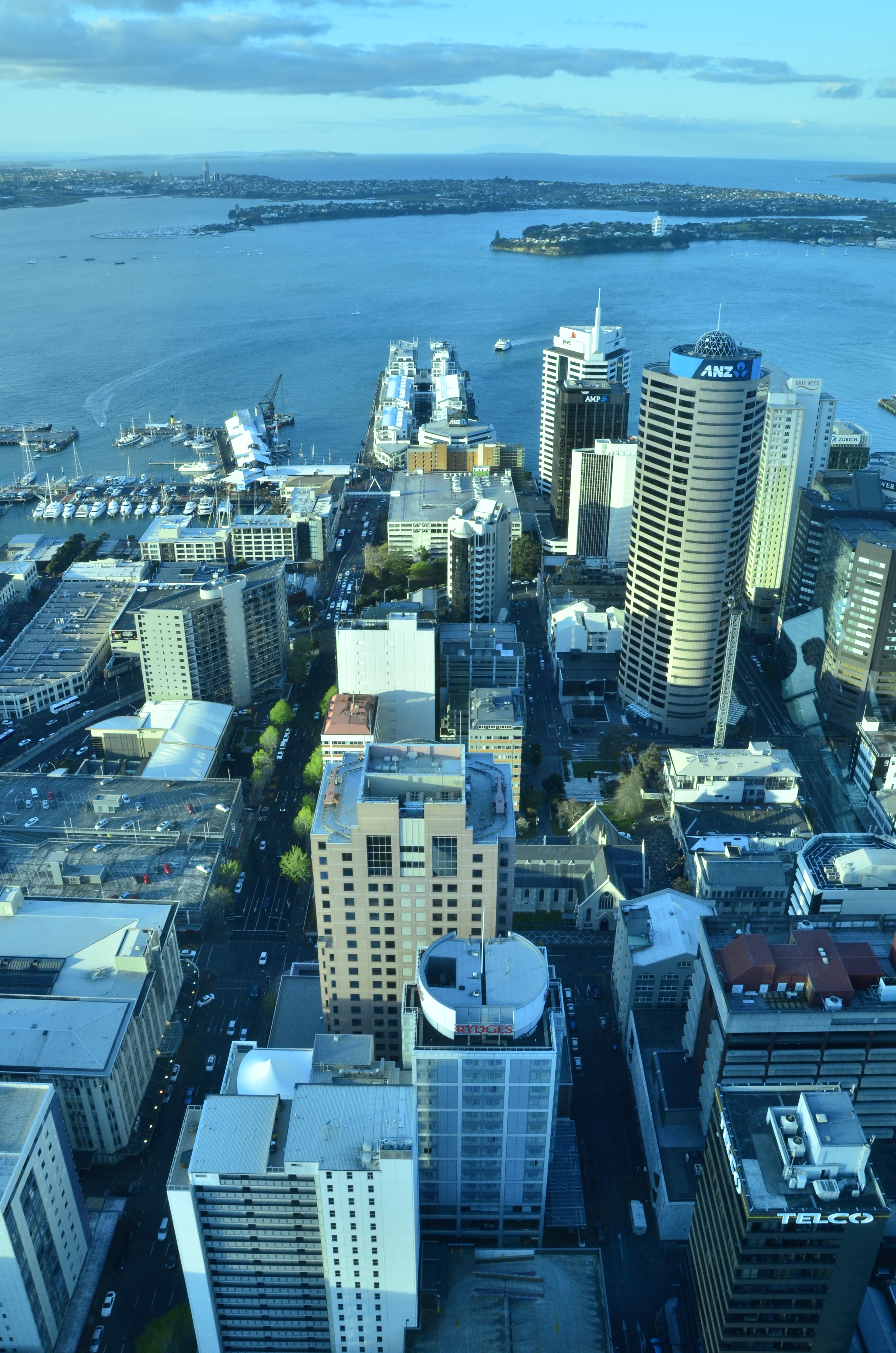 Auckland a tout d’une ville Nord-Americaine : rues très larges perpendiculaires ignorant la topographie, succession de parcs accueillant le campus universitaire, centre-ville ultra-dynamique hérissé de buildings et même une tour-emblème qui n’abrite rien d’autre que des bars ou restaurants mais offre surtout la plus belle vue qui soit sur la ville et ses environs. Coup d’œil qui rappelle qu’entre les différentes baies donnant sur la mer et l’océan tout proche, Auckland est complètement entouré d’eau. Également l’occasion de se rendre compte comme, malgré tout, la ville est petite et comme la campagne environnante est à peine à quelques kilomètres des tours.